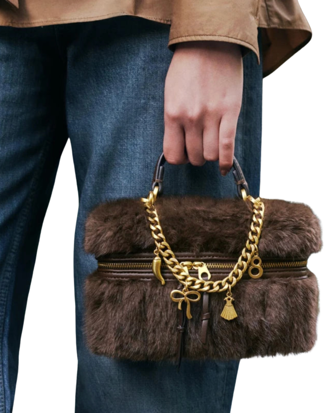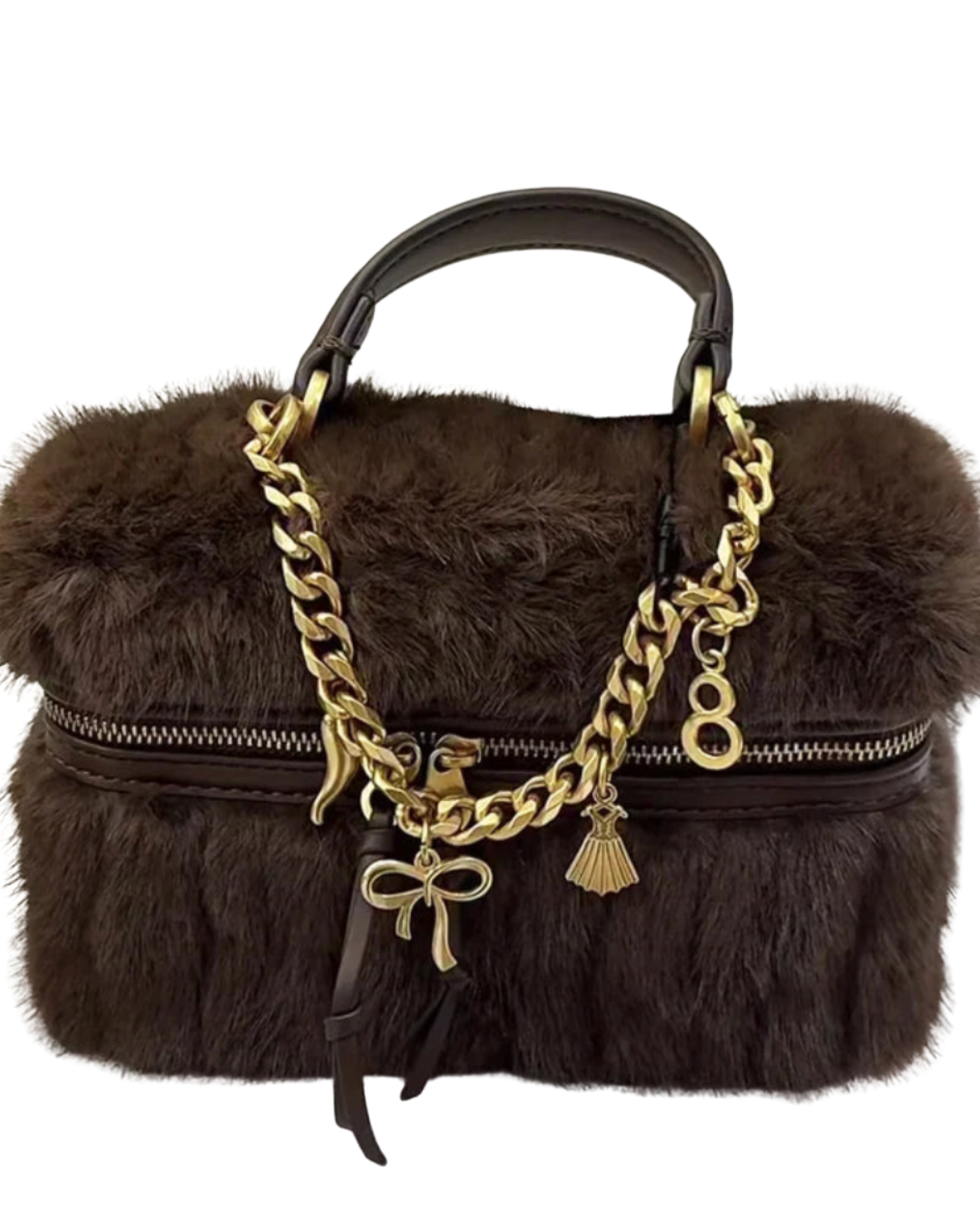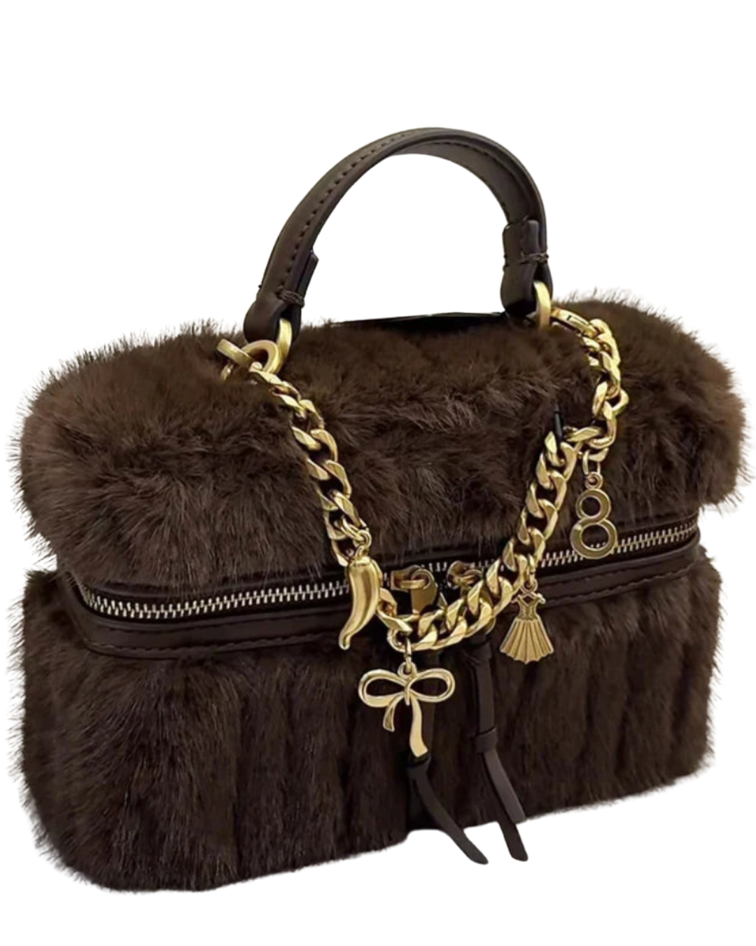 An elegant bag often reveals itself through its details. The Romy Faux Fur Mini Box Shoulder Bag combines a soft faux fur exterior with gold-toned accents, creating a look that feels luxurious while remaining light and easy to carry. The structured box shape is perfectly balanced by the plush texture and delicate decorative details, giving the bag a warm and sophisticated appearance.